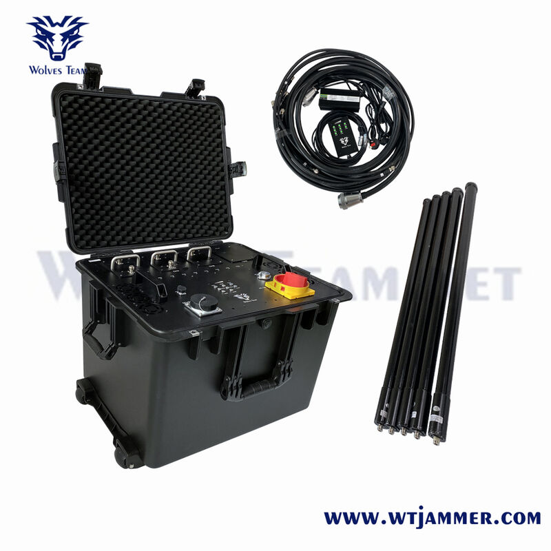 This portable jamming system is engineered to effectively neutralize RCIED threats and RF communications. The DDS Programmable jamming system comes in a flight case trolley configuration complete with antennas, external battery pack, power supply, and remote control.